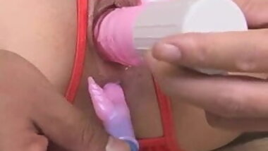 "Asian babe gets her cunt vibrated with sex toys"