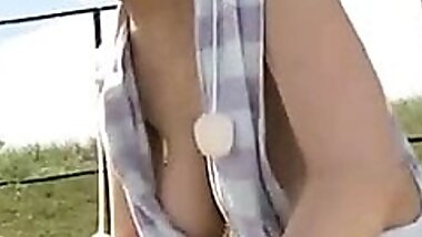 "Drove up north to meet the notorious no bra beauty in the countryside."