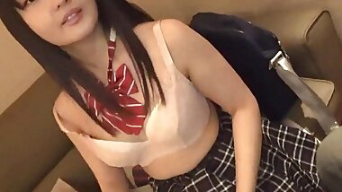 "Asian schoolgirl sucks and fucks big cock, she didn't expect her face to be covered in cum..."