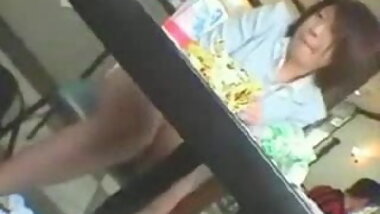 "Japanese girl humps table to quiet orgasm (self-shot) "