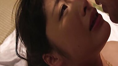 "Japanese Milf fucks the boss while her husband sits at the table!"
