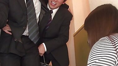 "Japanese milf slut gives her cunt to her husband's coworker at dinner time!"
