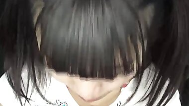 "Cute Japanese teen fucks her hairy pussy with a toothbrush before giving a pussy job"