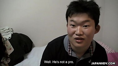 "horny Korean cougar gets fucked by Japanese dude"