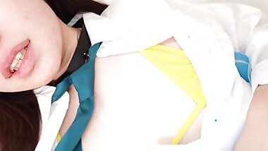 "Ai in a schoolgirl uniform spreads her pussy for a hard dick"