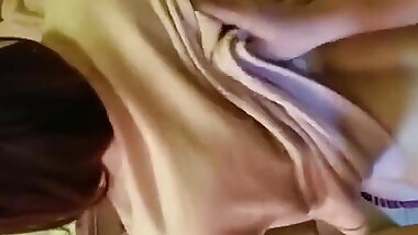 "Super cute Japanese babe lets him play with her pussy"