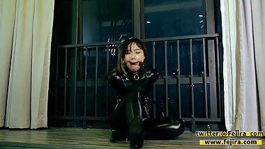 "Fejira com - Red haired Kigurumi playing in latex and pvc"