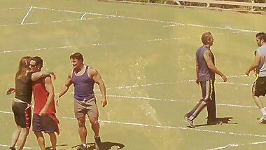 "Threesome with her lover and one of his best buddies"