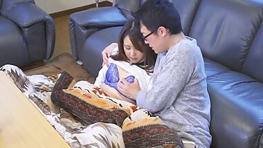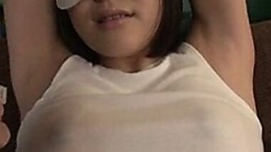 "Japanese hottie drops her panties and lets her horny boyfriend toy with her hairy pussy"