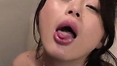 "Naughty busty Ruri Kouda with cum in her mouth and on her ti"