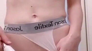 "Japanese dressing room in pink and white satin panties "