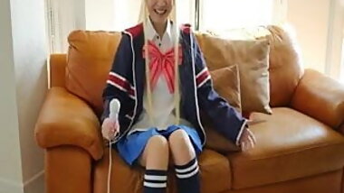"Cute girl wearing Japanese Schoolgirl uniform dry humping him till he cums in his underwear grinding doggystyle"