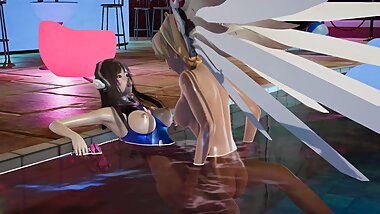 "Dva is fucked by the futa mercy at the pool party with her oily body well soaked by the pool water"