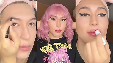 "Transgender undress after a wet cum session"